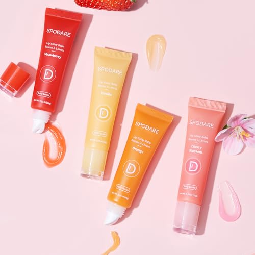 Lip Glowy Balm Cherry Blossom, Lip Gloss enriched with Shea Butter, Wolfberry Extract & Hyaluronic Acid Complex for Plumping Finish – Light Weight Travel Size for Men and Women