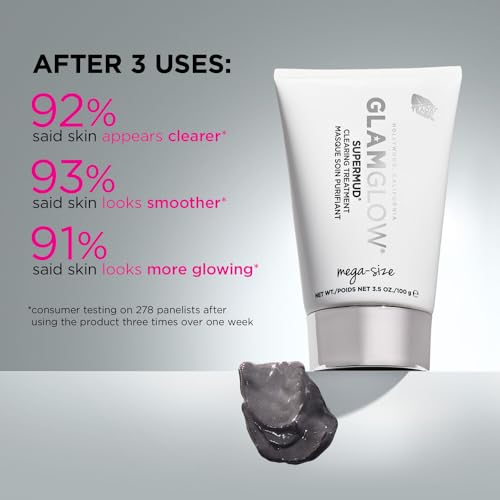 Glamglow SUPERMUD Instant Clearing Treatment Face Mask | Clearing Face Mask For Acne Prone Skin and Oiliness to help Minimize Pores | Activated Charcoal, BHA & AHAs