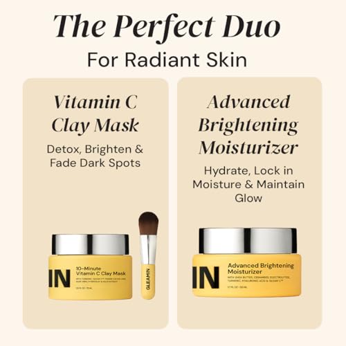 Gleamin Brightening Duo – Vitamin C Clay Mask & Advanced Brightening Moisturizer for Dark Spots, Uneven Tone & Glowing Skin