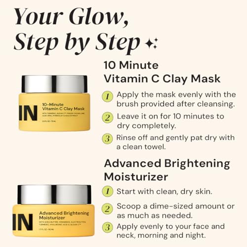 Glow Essentials Duo: Includes a powerful Vitamin C Clay Mask and a hydrating Advanced Brightening Moisturizer for visibly brighter, smoother, and healthier-looking skin.