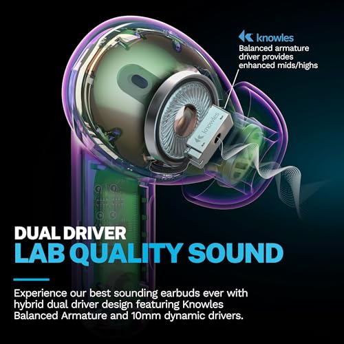 Epic Pods ANC feature our innovative dual-driver design that elevates every aspect of your listening experience. The hybrid dual driver system with Knowles Balanced Armature delivers enhanced mids and highs while custom-tuned 10mm dynamic drivers provide accurate mids and thundering bass. With adaptive active noise canceling and 6 perfectly positioned microphones, these earbuds provide stability through every adventure. Immerse yourself in Hi-Res Audio, and LabSpatial Audio that transports you into the concert or movie for amazing listening experience. With an incredible 40+ hours of playtime, these earbuds enhance both your audio and your everyday listening experience in a sleek stem design.