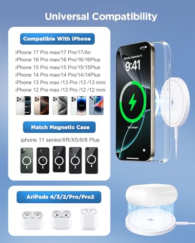 【Wide Compatibility for Multiple iPhone Models】Designed to work seamlessly with a wide range of models, including iPhone 17, 17 Pro, 17 Pro Max, Air, 16, 16 Pro, 16 Pro Max, 16 Plus, 15, 15 Pro, 15 Pro Max, 15 Plus, 14, 14 Pro, 14 Pro Max, 14 Plus, 13, 13 Pro, 13 Pro Max, 13 mini, 12, 12 Pro, 12 Pro Max, 12 mini, 8 and above ( paired with magnetic case or ring), AirPods Pro4/Pro2/2/3/4 (Pro 2/3/4 requires wireless charging case) ❌Not recommended for other brands