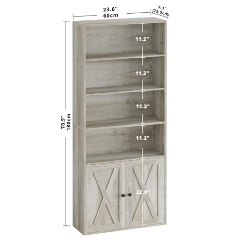 Specification: IRONCK Industrial Bookshelves and Bookcases with Doors Floor Standing 6 Shelf Display Storage Shelves 70 in Tall Bookcase for Home Office, Living Room