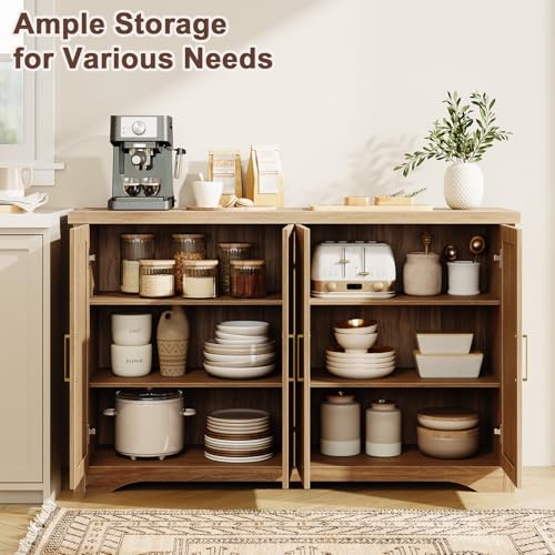 Fluted Buffet Cabinet with Storage Accent Sideboard,Modern Credenza with 4 Doors & Adjustable Shelves,Wood Coffee Bar Table Console for Dining Room Kitchen Living Room Entryway,Natural Oak