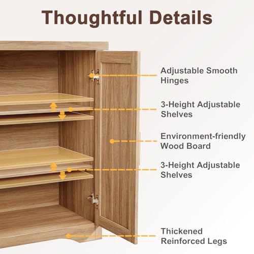 Versatile Storage Solution:This sideboard cabinet seamlessly transitions between roles as a kitchen buffet server,dining room buffets & sideboards,living room media console,or entryway storage cabinet,meeting diverse storage and display needs while enhancing the room’s functionality and aesthetics.