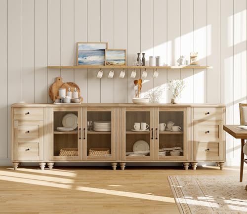【Adjustable Shelf & Glass Door】Designed with height adjustable shelf, you could manage the storage space according to the item size. It maximizes the available space of the room while providing functional storage. Additionally, the transparent tempered glass door of the buffet sideboard make it easy for you to find items you need.