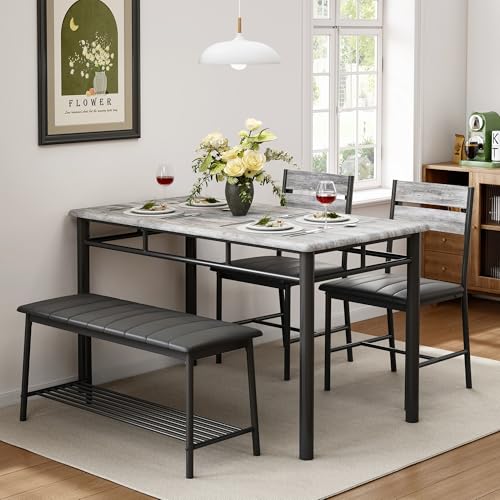Specification: IRONCK Dining Table Set for 4, Kitchen Table with Upholstered Bench and 2 Chairs, Kitchen Table and Chairs Set for Small Space, Apartment, Gray