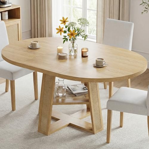 Specification: LIKIMIO 43″-59″ Extendable Round Dining Table for 4-8, Transformer Oval Dining Room Table with Removable Leaves Space Saving, Wood Base Modern Kitchen Table with Storage Shelf for Living Room, Natural