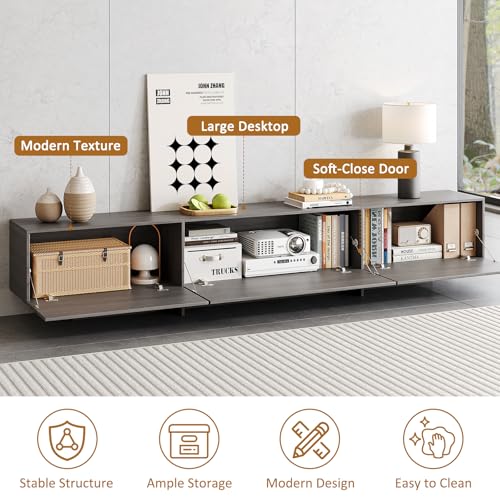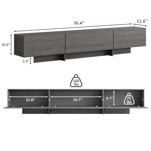 【Large Storage Capicity】The spacious modern TV stand offers 4 large storage cabinets, the 76.4 inches smooth desktop, providing ample space to organize your living room essentials, offering plenty of storage options to keep your home organized and visually clean. Whether storing groceries, dinnerware, small appliances, or daily necessities, this tv cabinet helps keep your space tidy and clutter-free.