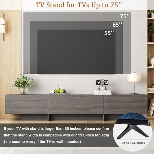 76.4” Modern TV Stand for Living Room, Mid Century Modern TV Console,Entertainment Center with 4 Drawers, Large Storage Cabinet Table, Media Cabinet for Living Room, Bedroom, Grey