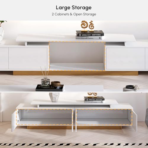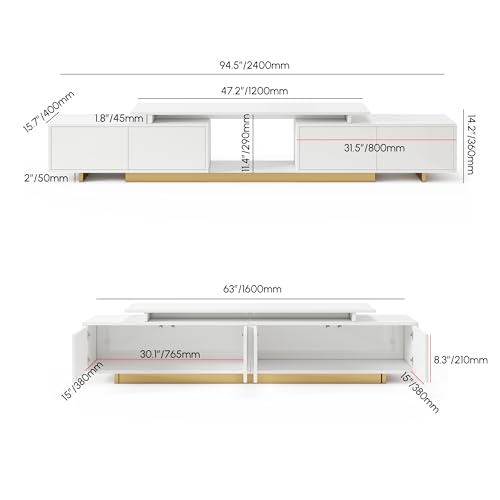 Innovative Adjustable Length Design:Homary extendable TV stand offers adjustable length, extending up to 95″ to perfectly fit any room, providing flexible media storage and functionality.
