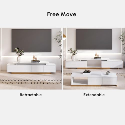 homary Extendable TV Stand, Modern Entertainment Center with Drawers, Adjustable Length Media Console for Living Room Bedroom (White)