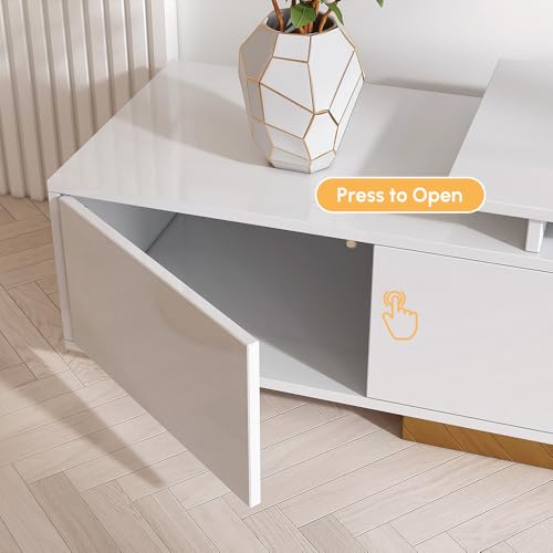 Spacious Storage for Media Devices:With two spacious cabinets featuring press-to-open doors and an open compartment, Homary media console offers ample space to store your TV, gaming devices, and other accessories while keeping your living area organized.