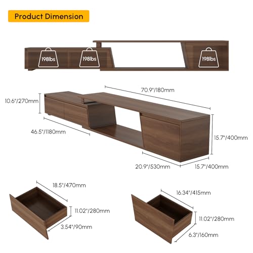 Free Move: Homary extendable tv console is retractable and extendable horizontally, which match the different living room size and support space saving.