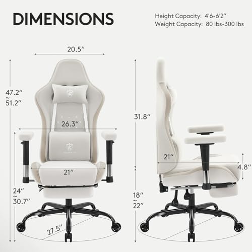 Adjustable Comfort: This gaming chair reclines from 90° to 150° and locks at any angle within that range. Recline the chair and pull out the footrest to enjoy full-body support and relaxation. With simple 4-inch seat height adjustment, 360° rotating seat, smooth-rolling wheels and 2D armrests with 2.75-inch lifting and 45 ° rotation,every aspect is customizable for maximum comfort. Perfect for gaming, working, and resting.