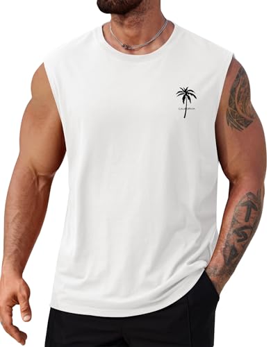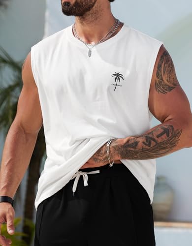 Mens Beach Summer Tank Tops Palm Tree Graphic Vacation Muscle Sleeveless Shirts (S-3XL)