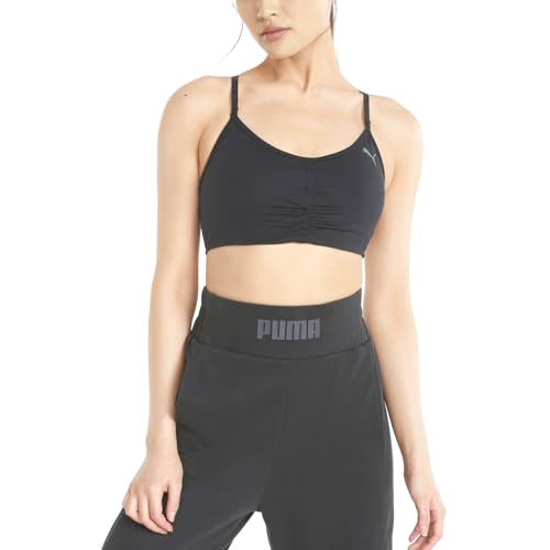 PUMA Womens Low Impact Studio Foundation Sports Bra Plus Athletic Casual – Black