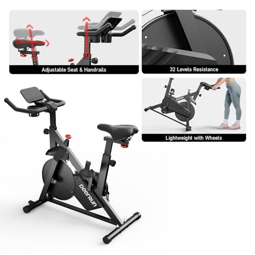 DeerRun Exercise Bike, Indoor Cycling Bike Brake Pad/Adjustable Magnetic Stationary Bike with App, Low Noise Workout Bike for Home Cardio 300lbs Weight Capacity with Pad Mount & LCD Monitor