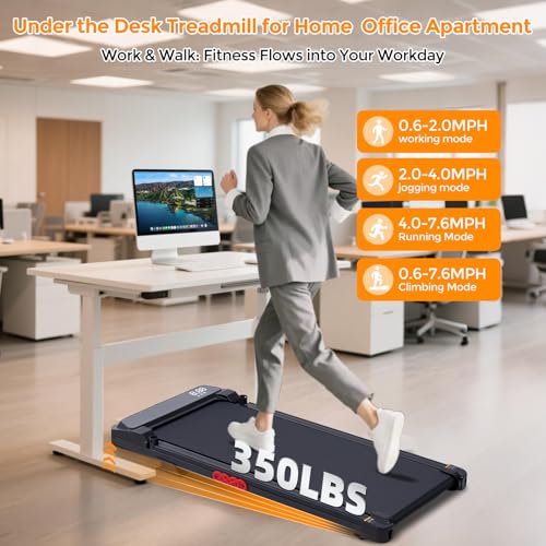 【Balanced 3.0HP for Daily Indoor Runs】Quiet yet strong, the 3.0HP motor delivers 0.6–7.6 MPH speeds and supports up to 350 LBS capacity. A built-in incline structure adds mild workout intensity. Designed for portable treadmills for home small needs, it works as a walking pad treadmill with handle bar unit, fitting jogging or calm walks into small hall, bedroom, or office spaces