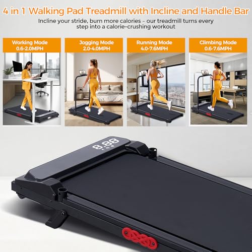 Specification: KASSADIN Walking Pad with Handle Bar, 2026 Upgrade Portable Small Treadmill with Handles for Home Small, 3.0HP Under Desk Walking Pad Treadmill with Incline, 0.6-7.6MPH, 350LBS
