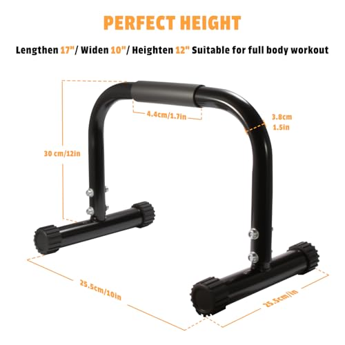 【Protect your wrist】 The parallettes bars ergonomic design of the thicker non-slip grip reduces stress on the wrist and provides a stable, comfortable grip. cushioned foam grip, minimising wrist fatigue and enabling better performance.