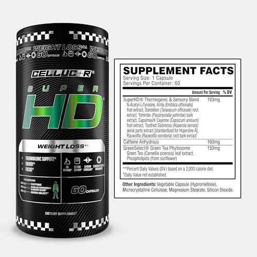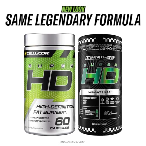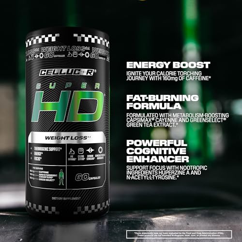 Cellucor SuperHD Thermogenic Fat Burner Weight Loss Supplement, Appetite Suppressant, & Energy Booster Capsimax, Green Tea Extract, 160mg Caffeine & More 60 Capsules (Packaging May Vary)
