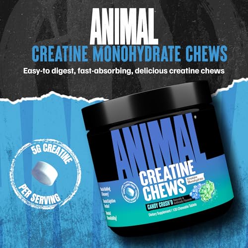 Animal Creatine Chews – Enhanced Creatine Monohydrate Chewable Tablets with AstraGin & Sea Salt, Max Absorption Pre Post-Workout, Lean Muscle Growth, Strength & Recovery, New Flavor Candy Crush’d