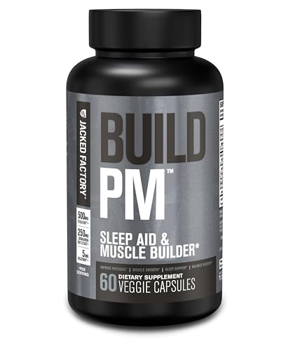 Jacked Factory Build PM Night Time Muscle Builder & Sleep Aid – Post Workout Recovery & Sleep Support Supplement w/VitaCherry Tart Cherry, Ashwagandha, & Melatonin – 60 Natural Veggie Pills