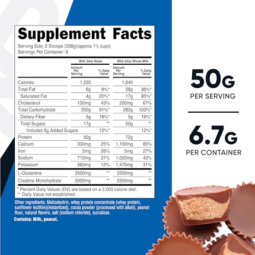 Nutricost’s Chocolate Peanut Butter Mass Weight Gainer contains 6.7 pounds per bottle. Each serving has 50 grams of protein and is non-GMO. This Chocolate PB flavored Mass Gainer DOES Milk, Peanuts. Nutricost, located and headquartered in the USA, only uses the best ingredients to ensure maximum quality and to help you feel your best! By keeping our supplement recipes simple and clean, you get the best experience possible with Nutricost. Our supplements are manufactured in a GMP-compliant and FDA-registered facility; and each batch of every product is tested by independent, ISO-accredited laboratories. These statements have not been evaluated by the Food and Drug Administration. This product is not intended to diagnose, treat, cure, or prevent any disease.