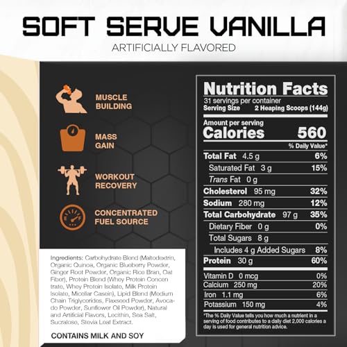 Lean Gains: 560 quality calories from premium proteins, fast-fueling carbohydrates, and energy-packed lipids to help you add size and strength.