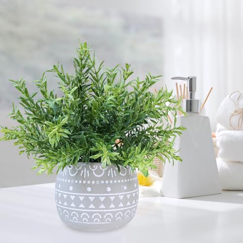 Long-Lasting Beauty: These fake plants are made of plastic with fine details, giving them a realistic look. Their flexible stems can be easily adjusted and fluffed to your liking. The planters are crafted from concrete with beautifully carved patterns on the surface. Enjoy the beauty of these plants without the need for watering or maintenance, adding charm to your home effortlessly.