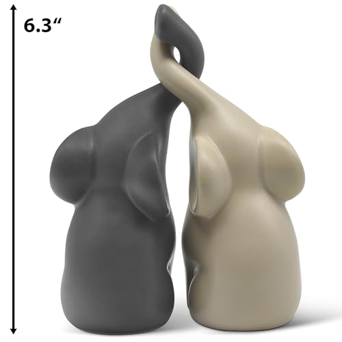 Vaudagio Loving Pair of Elephants in Beige & Grey – Modern Ceramic Sculpture – Figurine as a Set – Decoration Figure 6.3″ high – Ornament Elephant in Love
