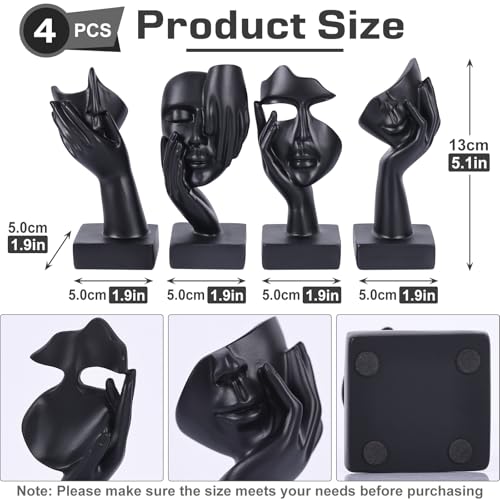 Elevate your space with this 4 PCS Abstract Thinker Statue Set, blending artistic flair with modern design. These thinker statue decor pieces reinterpret the thinker sculpture, making them perfect for desk, bookshelf, or table accents. Crafted from premium resin, their sleek black figurines and radiant gold finishes harmonize with gold accent decor and dark themes, ideal for living room, office, or entryway art. Compact yet impactful, these small figurines are versatile abstract decorative objects, fitting seamlessly into room decor or designer home settings. Whether as decor for women or a touch of esthetician room charm, these decorative objects enhance both functionality and style. A thoughtful gift for housewarmings, birthdays, or anyone who loves creative decor, these statues effortlessly blend elegance and utility into your house or office decor accents. Add a touch of timeless sophistication to your space today!