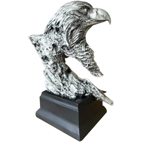 H&W Silvery Bald Eagle Figurines – The USA’s National Emblem – Resin Statue Decoration for Home/Study/Living Room, Great Collectible Figurines, Best Gift for The Man, Silvery (HH17-D9)