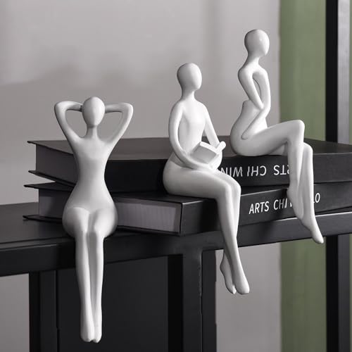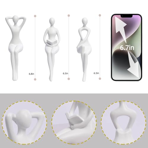 Quoowiit White Thinker Statue Unique Ornament Sculpture, Art Modern Home Decor Accents Bookshelf Decor, Creative Table Decorations for Living Room Desk 3 Piece
