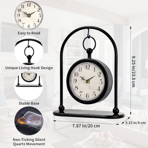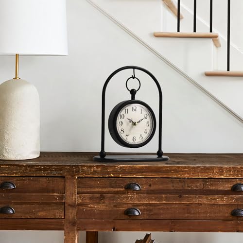 Vintage Metal Table Clock, Farmhouse Table Clock, Small Black Silent Non-Ticking Battery Operated Desk and Shelf Clocks for Home Kitchen Living Room Bedroom Decor