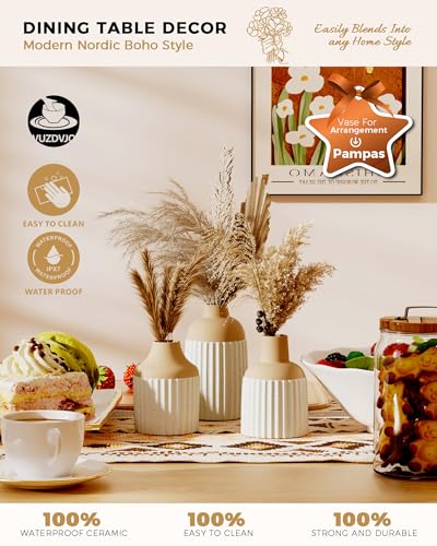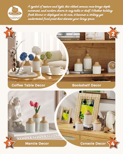🏡【Elegant Sandy Matte Glaze Complements Any Home Style】Crafted from 100% high-quality ceramic, this vase features a ribbed texture and a unique sandy matte stone-like glaze that gives it a natural, organic feel. Its clean lines and neutral tones make it a perfect match for modern, minimalist, boho, Japandi, Scandinavian, and rustic farmhouse interiors.