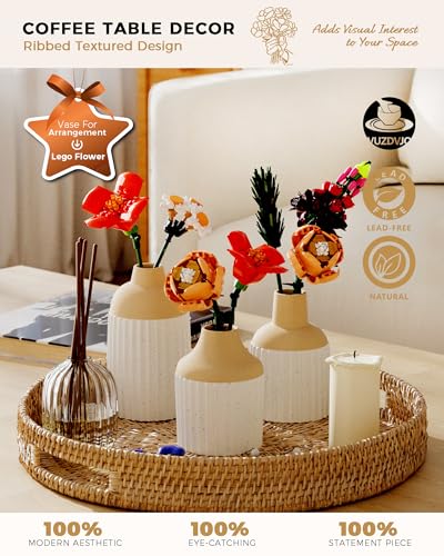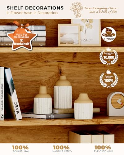 📏【Perfect Size】Large vase (H: 5.3″ x W: 3″), Small vase (H: 4.4″ x W: 3″), Mini vase (H: 4.05″ x W: 3″). This beige white ceramic vase features a modern boho ribbed textured design that adds texture and style to any space. Each piece is handcrafted by artisans, making it a one-of-a-kind, high-quality accent for your home.