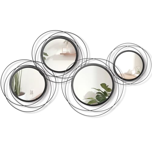 Hicarer 4 Pcs Decorative Round Modern Circle Mirror Wall Art Ring Metal Mirror Wall Mounted for Bedroom, Living Room, Entryway, Dining Room, Hallway (Black)