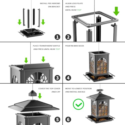 EASY & FUN TO ASSEMBLE: This bird feeders features a charming courtyard-style design and can be assembled in just one minute. It’s a simple and engaging activity that brings enjoyment to the whole family