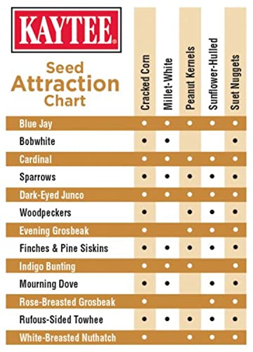 Traditional seed mixes leave a mess in your backyard while suet leaves your hands feeling greasy. Kaytee Seed & Suet No Mess Blend is a mixture of seeds and suet nuggets formulated to leave no mess on the ground or on your hands. That’s because we blended 100% edible seeds with 100% edible suet nuggets resulting in a convenient and easy to feed mix. No need to touch the suet; simply pour into your favorite feeder and enjoy the show. Kaytee Seed & Suet attracts 2X more birds than Black Oil Sunflower alone, while keeping your backyard clean!