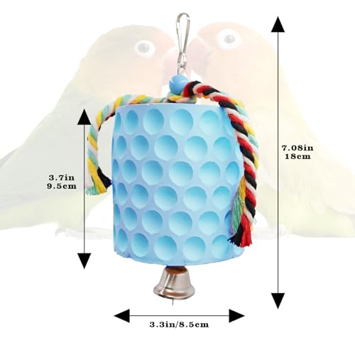 Easy to Install: The diameter of the bird calcium block toy is 3.3 inches and the height of calcium stone is 3.7 inches. The top of each toy has several colored cotton rope and a metal hook, making it easy to hang anywhere in the bird cage. Loading and unloading are effortless, ensuring easy use.
