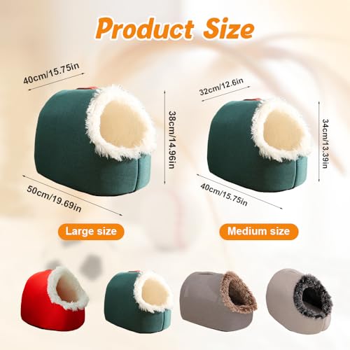 Winter Warm Pet Cave Bed, 2026 New Soft Plush Cozy Indoor Nest for Cats and Small Dogs, Removable Cushion Warming Pets Cozy Enclosed Cat House with Non-Slip Bottom for Winter (Brown, Medium)