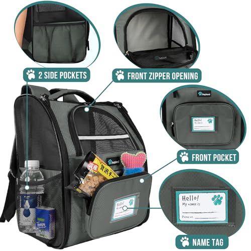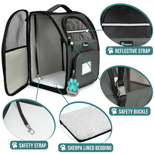 PetAmi Dog Backpack Carrier for Small Large Cat, Pet, Puppy, Ventilated Pet Hiking Backpack Travel Bag, Airline Approved Cat Backpack Carrier, Camping Biking Dog Bag Up to 18lbs Pet, Dark Grey