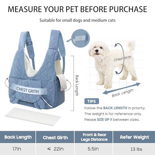 【Pet Carrier Backpack Dimensions】: Measuring 17.5″ x 17.5″ x 6.5″, this Pet Carrier Backpack is ideal for pets weighing up to 13 pounds. Adjustable shoulder straps (29–35 inches) ensure a secure and comfortable fit for most users. Be sure to measure your pet and refer to the size chart (Fig. 2) to select the appropriate size.