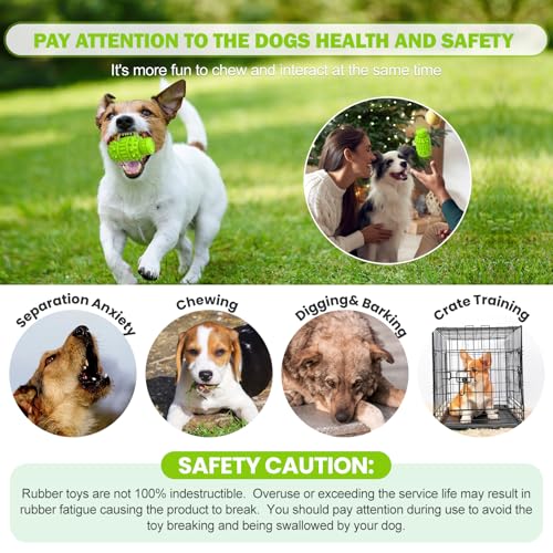 SAFETY CAUTION: Rubber toys are not 100% indestructible. Overuse or exceeding the service life may result in rubber fatigue causing the product to break. You should pay attention during use to avoid the toy breaking and being swallowed by your dog.
