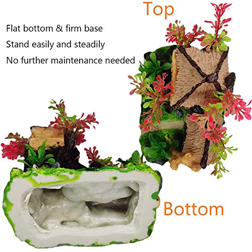 Hamiledyi 4PCS Aquarium Decoration, Fish Tank Artificial Resin Castle Ornaments, Betta Tank Landscape Decorations with Plastic Plants for Shrimp Fish Climbing Hiding