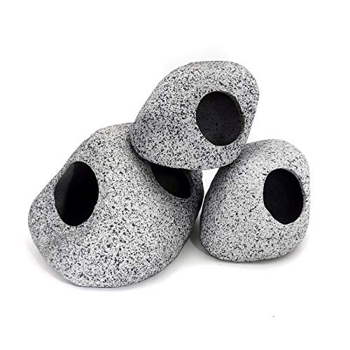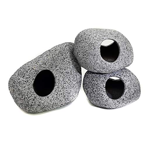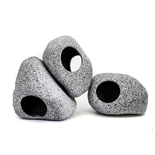 JIH Aquarium Decorations Rock, Ceramic Shelters – Shrimp Habitat, Breeding Tube, Hiding cave, Stackable Fish Tank Decor Cave for Hiding, Betta Fish (J101+J001x2)