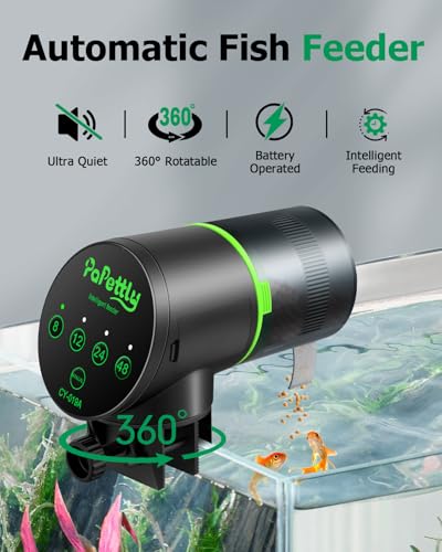 Automatic Fish Feeder for Aquarium, Auto Fish Food Dispenser with Timer and Feeding Ring, Moisture-Proof, Smart Fish Tank Vacation Feeder with 2 AAA Batteries