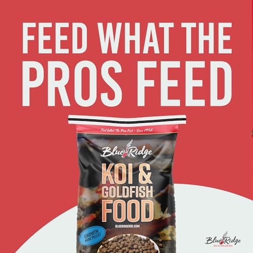 Blue Ridge Koi Fish Food 25lb – Koi Food Mini Growth Formula, Goldfish Food, Premium Fish Food for Ponds, Ponds Fish Food, Floating Pond Pellets